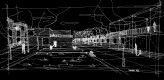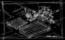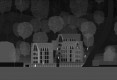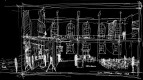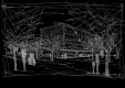 temporär und fragmentarisch wirkenden gebäudehülle aus