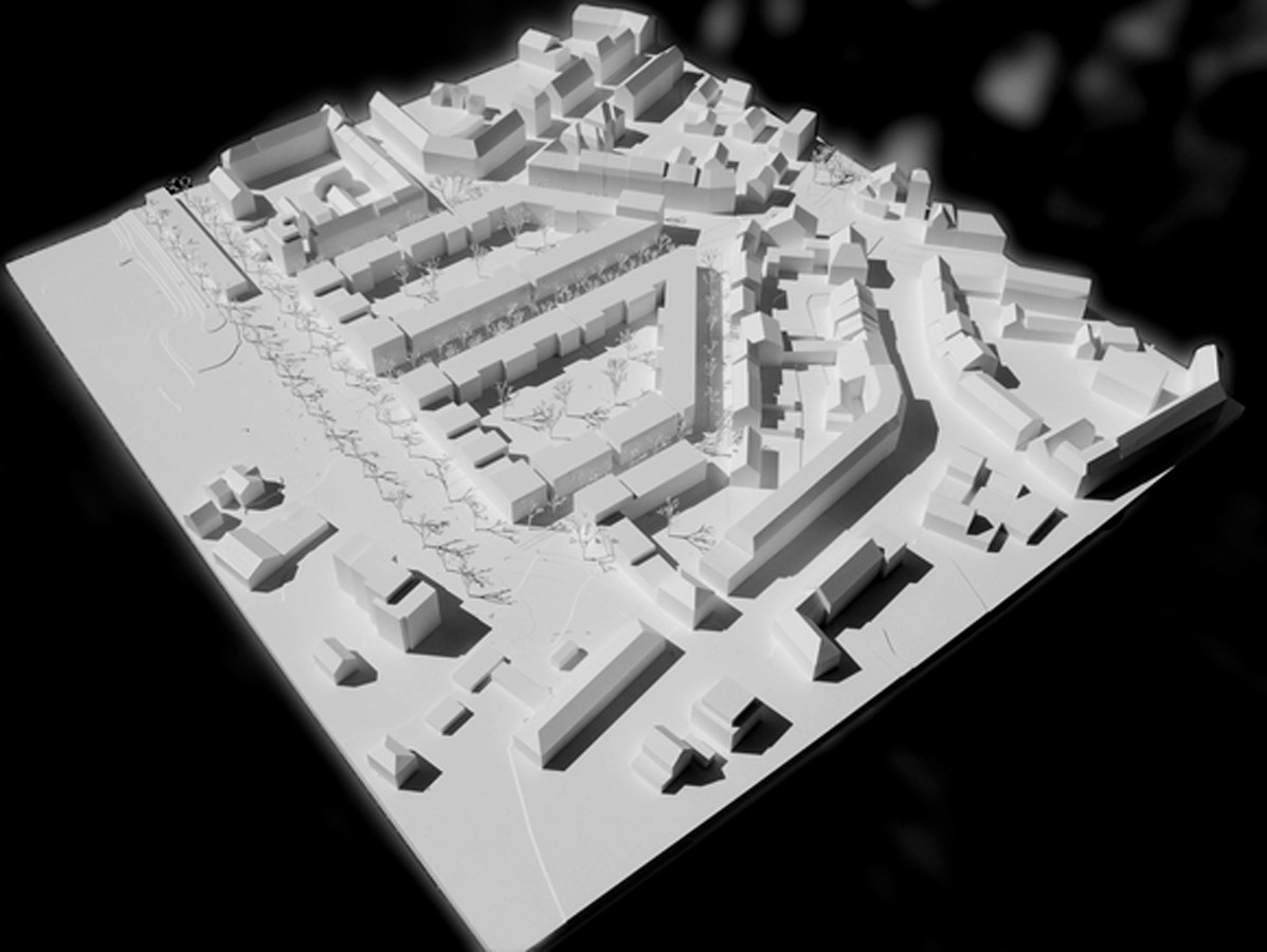 das wohngebiet paradies in konstanz wird durch die 3-4 geschossigen hochwertigen gründerzeitbebauungen meist als blockrandbebauungen geprägt. die neue wohnstruktur des "doebele" nimmt diesen ansatz auf gliedert das grundstück in zwei blockbebauungen die in sich jeweils unterschiedliche teilungen und höhenentwicklungen aufnehmen. in der achse zum blickpunkt des münsters von konstanz entsteht ein breiter mit bäumen gesäumter boulevard mit läden cafes und restaurants der den direkten anschluss zur oberen laube ermöglicht und eine städtebauliche entwicklung über die heutige grenze in die schweiz perspektiert. die viergeschossige bebauung des boulevard wird mit zwei fünfgeschossigen bauwerken zur grenzbachtrasse und einem sechsgeschossigen turmhaus zum nördlichen stadtanschluss definiert. in der anlieger/doebelestraße findet das quartierszentrum mit möglichkeiten/treffpunkt für vorträge kurse ausstellungen kiosk… seinen platz.