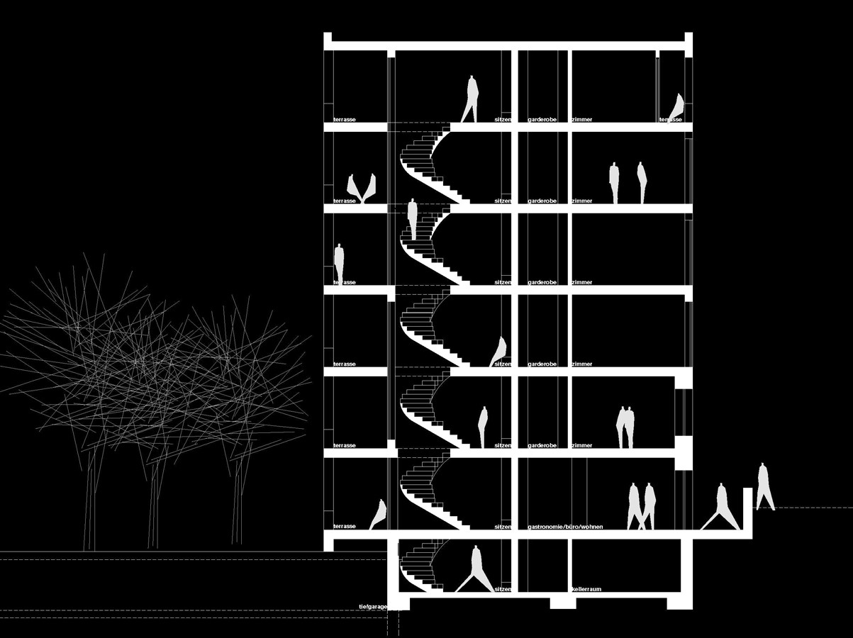 Für die Bauherrengemeinschaft Beznerturm, Umbau und Erweiterung des Verwaltungsgebäudes der ehemaligen Maschinenfabrik Bezner, mit zehn Wohnungen und einer Gewerbeeinheit auf sieben Geschossen, wurde durch einen Architekturwettbewerb ein Wohnkonzept erarbeitet, welches die vorhandenen, konstruktiven Fensterrhythmen aufnimmt und durch das Entwerfen von Grundrissen mit den Bauherrn im Bereich der Terrassen diese Regelmäßigkeit aufbricht, Öffnungen in Höhe und Breite vergrößert und in Reminiszenz zum vorhandenen, historischen benachbarten Fabrikgebäude, diese Stürze mit Rundbögen abschließt.