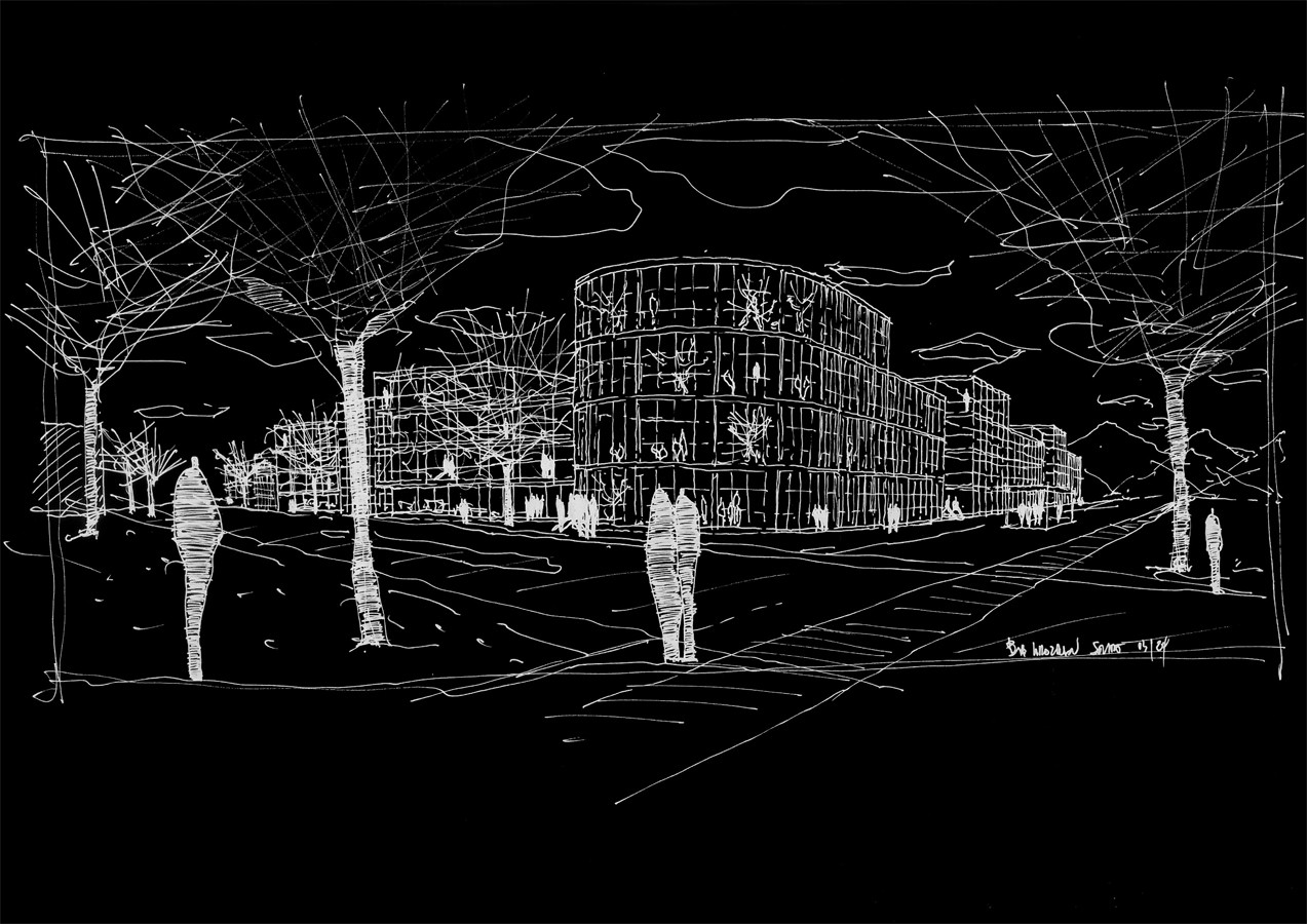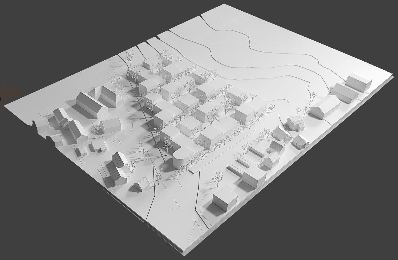 mit dem entworfenen konzept wird eine praezise idee fuer das wohnquartier an diesem ort formuliert.