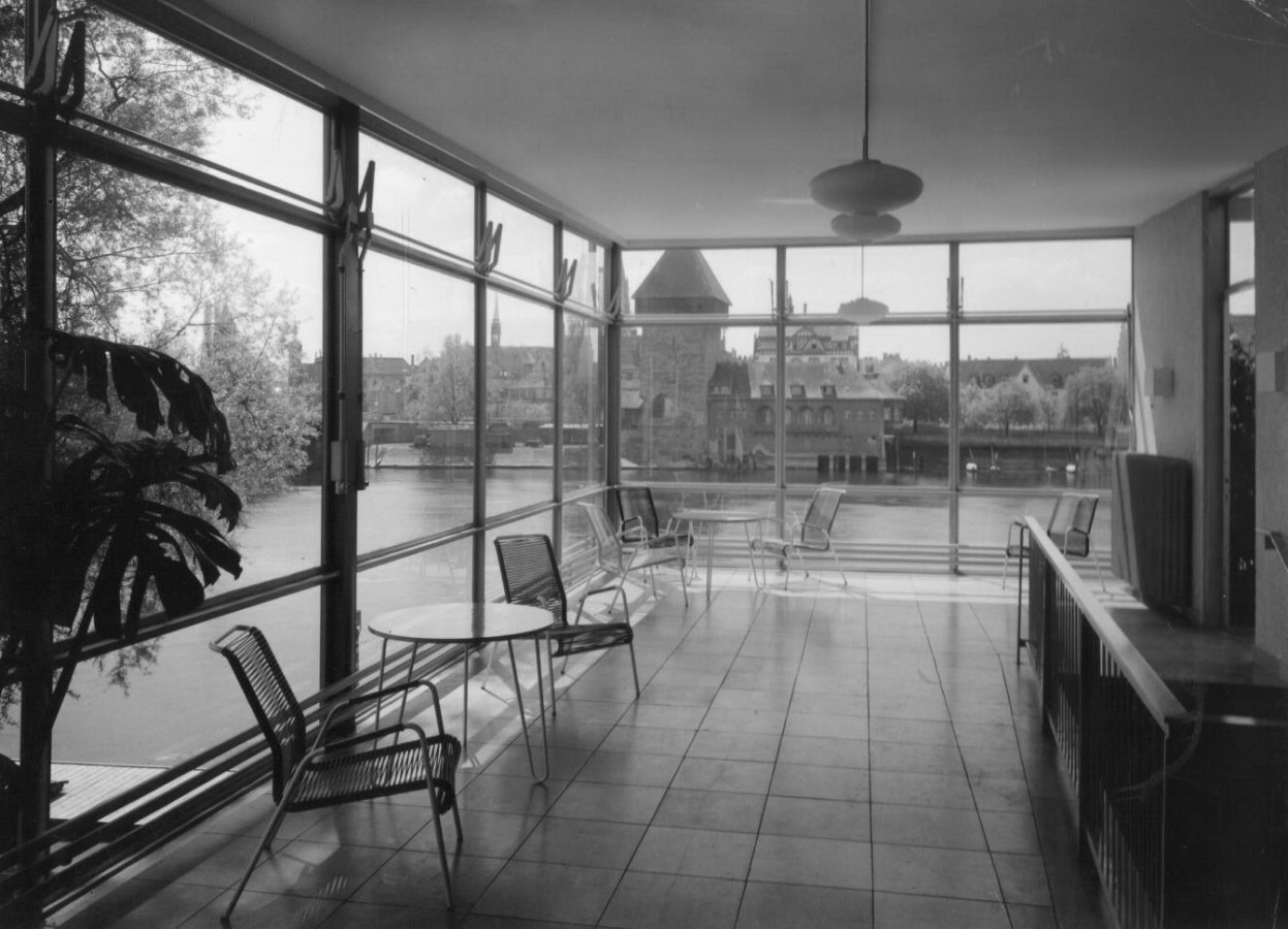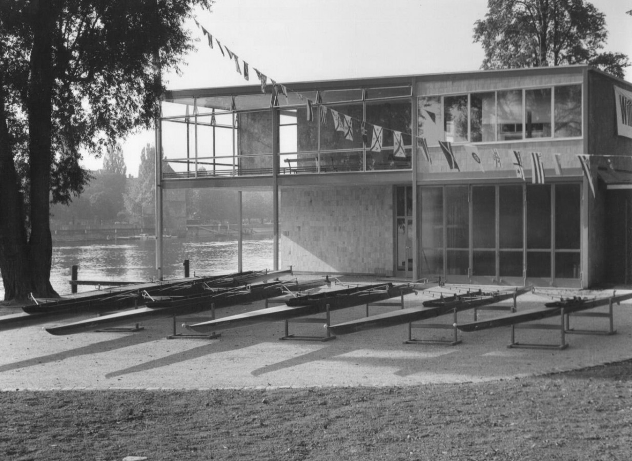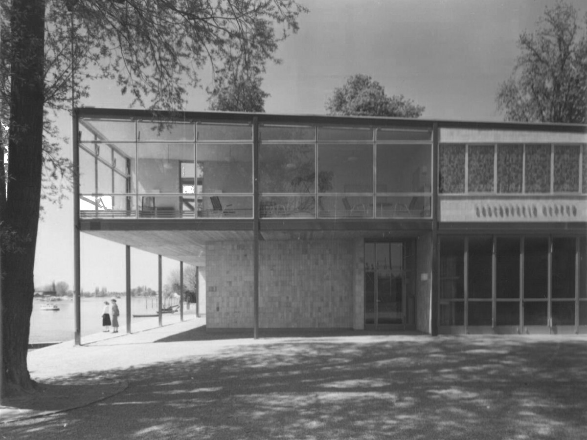 revitalisierung und erweiterung denkmalgeschütztes clubhaus neptun aus dem jahre 1956 des bauhausschülers architekt herrmann blomeier. die vorgeschlagene erweiterung knüpft an das konzept des ursprünglich geplanten zweiten bauabschnittes an und bietet eine neue respektvolle architektur an, dies in material, form und farbe im sinne herrmann blomeiers. zur spanierstraße entsteht eine adequate neue clubadresse mit neuer bootshalle im erdgeschoss und club- und gastronomieflächen im obergeschoss.
