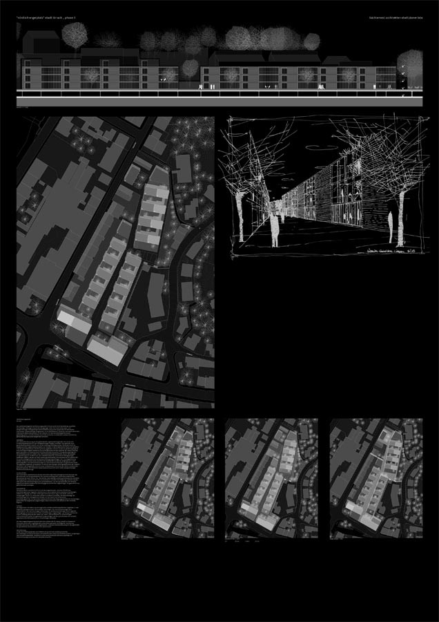 die innenhofbebauungen sind ausschließlich den wohnnutzungen vorbehalten, es werden erschießungen durch begrünte laubengänge, als auch konventionelle erschließungen vorgeschlagen.